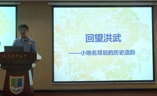 首先,王副馆长以古人的恋地情节作为出发点,从诗歌、绘画、造园等三个角度细致地诠释了人与环境之间的关系。随后,为加强同学们对地域性质和民族风貌的认识,王副馆长着重介绍了“金陵”地名的由来以及蒋山与明孝陵的历史。作为明孝陵副馆长,他对明太祖和金陵的地域文化也有着自己独到的见解,他表示,作为六朝古都,十朝都会,南京名胜古迹自古就与君王有着或多或少的关联。从煦园、阅江楼到兰家庄、沐府西门无不见证着明太祖的伟大历史功勋以及对于中华地域文化的贡献。最后,王副馆长将明代地名故事拓展至抗日战争时期的城墙保卫战,将优秀传统文化与爱国主义教育相结合,用绘声绘色地描述以及真切纪实的图片展示,让同学们在感受战马啾啾岁月的同时领悟到中国文化基因中人类的铮铮铁骨,激励同学们以史为鉴、牢记历史,在这些历史事件的背后充分挖掘其中蕴含的民族文化和爱国主义精神,自觉发扬和延续文化基因。